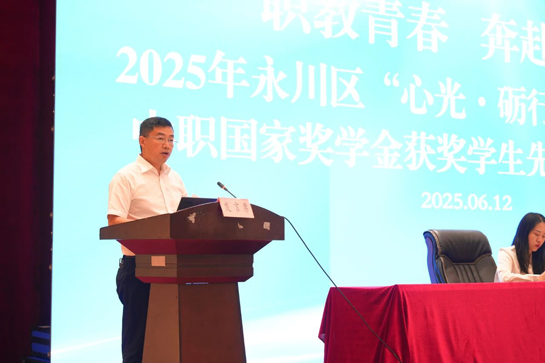 近日,永川区“心光?砺行”资助育人暨2023-2024学年度中职国家奖学金获奖学生先进事迹报告会在重庆市经贸中等专业学校学术报告厅举行。